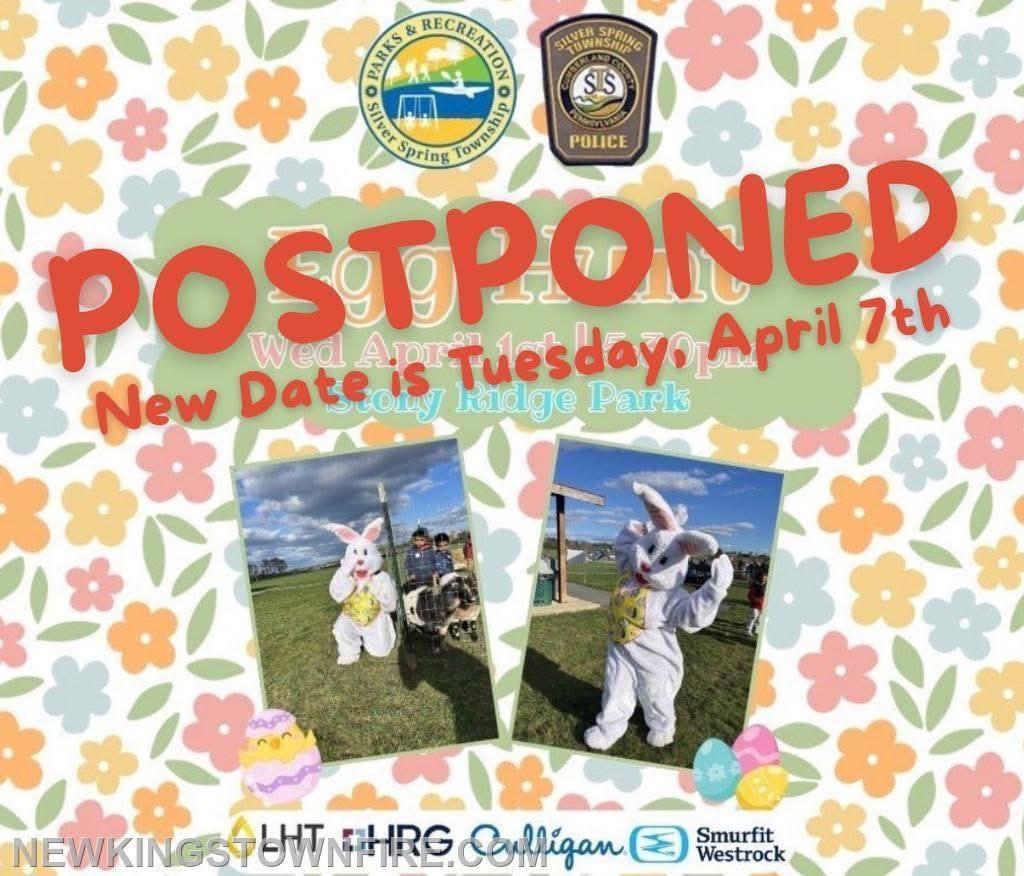 Due to the possibility of severe weather Wednesday evening, Township Staff made the early decision to reschedule the Egg Hunt on April 7th! All activities will follow the same time line.